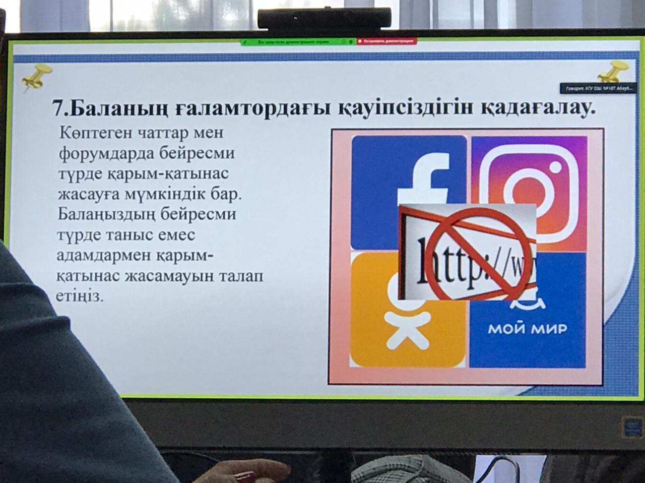 15 май 2021 0 1 2 3 4 5 "Директорлық-сенбі-ата-ана үні" онлайн кездесу Бүгін 15.05.2021ж күні кезекті "Директорлық сенбі ата-ана үні" онлайн кездесу өткізілді. Онлайн кездесудің тақырыбы: " Балалардың қауіпсіздігі бойынша ата-аналарға кеңес" .Ата-аналарға балалардың өмір қауіпсіздігі туралы ақпараттар айтылып, бейнетүсірілім көрсетілді. Осы беттің QR-коды:QR-код этой страницы:
