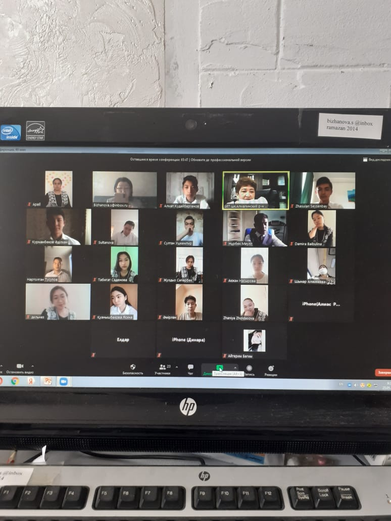 25 май 2021 0 1 2 3 4 5 "Сыңғырла, соңғы қоңырау!" "Сыңғырла, соңғы қоңырау!" салтанатты іс-шарасы 1-11 сыныптар арасында қашықтықтан Zoom платформасы арқылы өткізілді.Мектеп директоры Абеубекова Ботагоз Абенқызы барша оқушыларды , ата-аналарды, ұстаздарды соңғы қоңырау мерекесімен арнайы түсірілген бейнетүсірілім арқылы құттықтады. Осы беттің QR-коды:QR-код этой страницы: