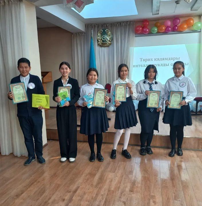 Гуманитарлық пәндер бірлестігі апталығына орай 8 сынып оқушылары арасында "Тарих қадамдары" атты интеллектуалды сайыс өткізілді