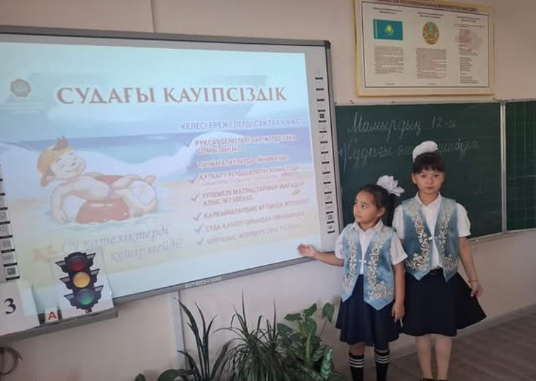 Бүгінгі сынып сағатында оқушыларға судағы қауіпсіздік жайлы айтылды.