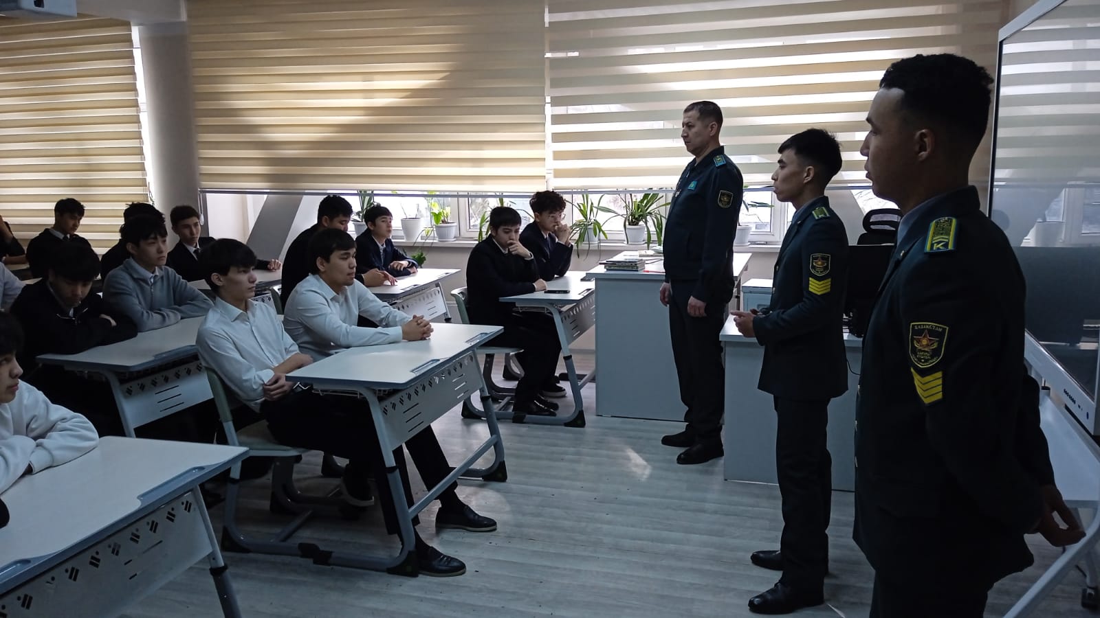 Іс-шара барысында курсанттар оқушылармен еркін форматта әңгімелесіп, әскери өмірдің қыр-сырымен, оқу барысындағы тәжірибелерімен бөлісті. Мұндай кездесулер жасөспірімдердің ел қорғаны болуға деген қызығушылығын оятып, болашаққа сеніммен қарауына жол ашады.