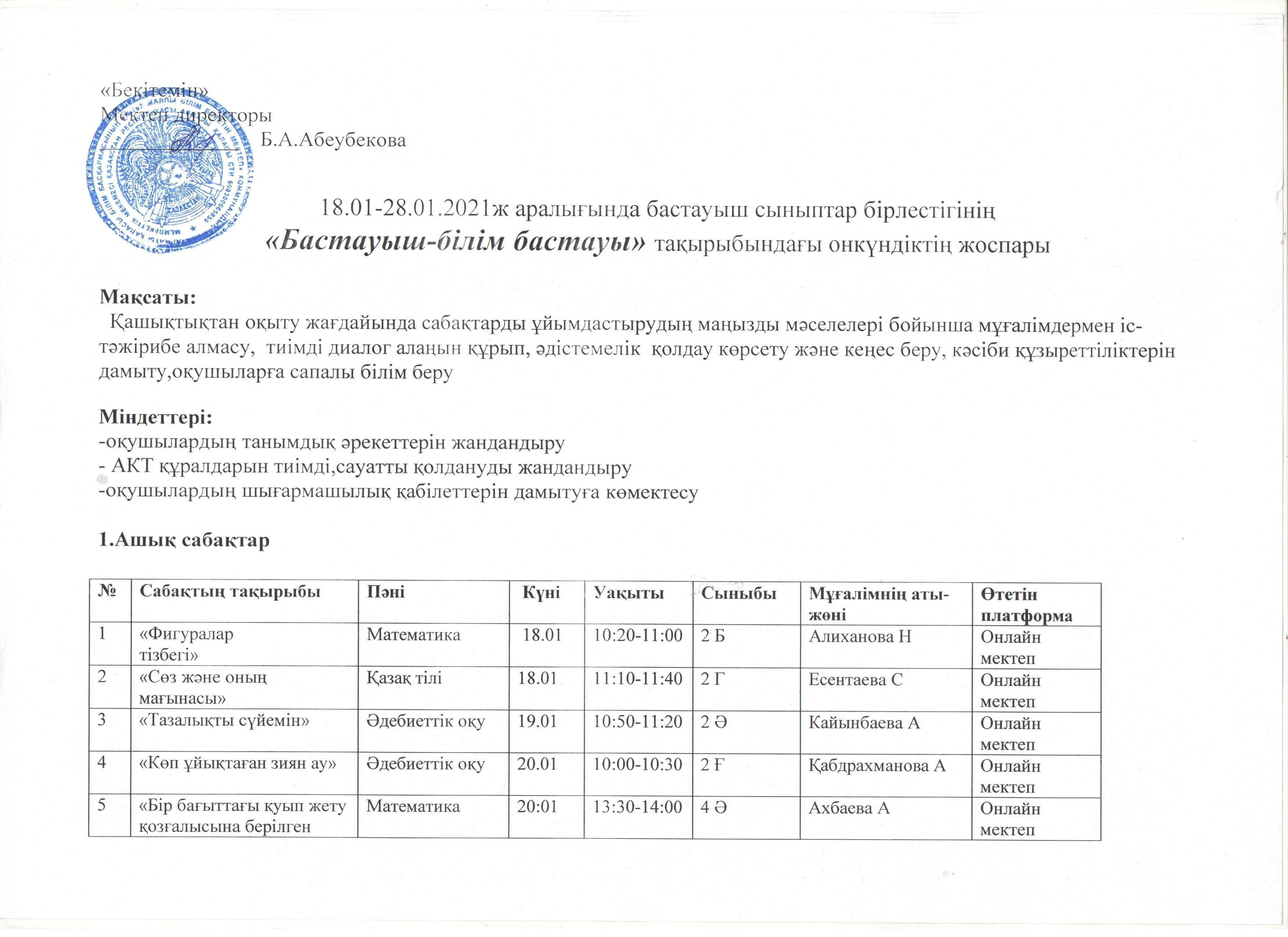 18 январь 2021 0 1 2 3 4 5 "Бастауыш-білім бастауы" тақырыбындағы онкүндік жоспары Осы беттің QR-коды:QR-код этой страницы: