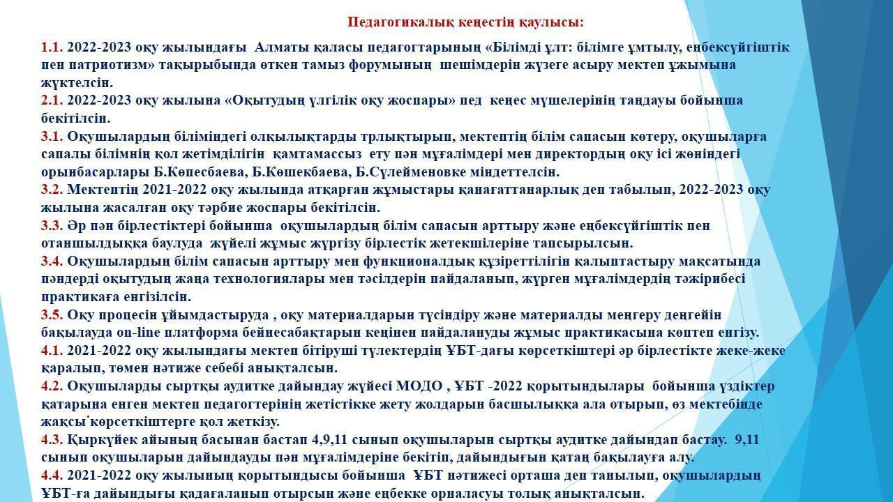 » №1 Педагогикалық кеңес