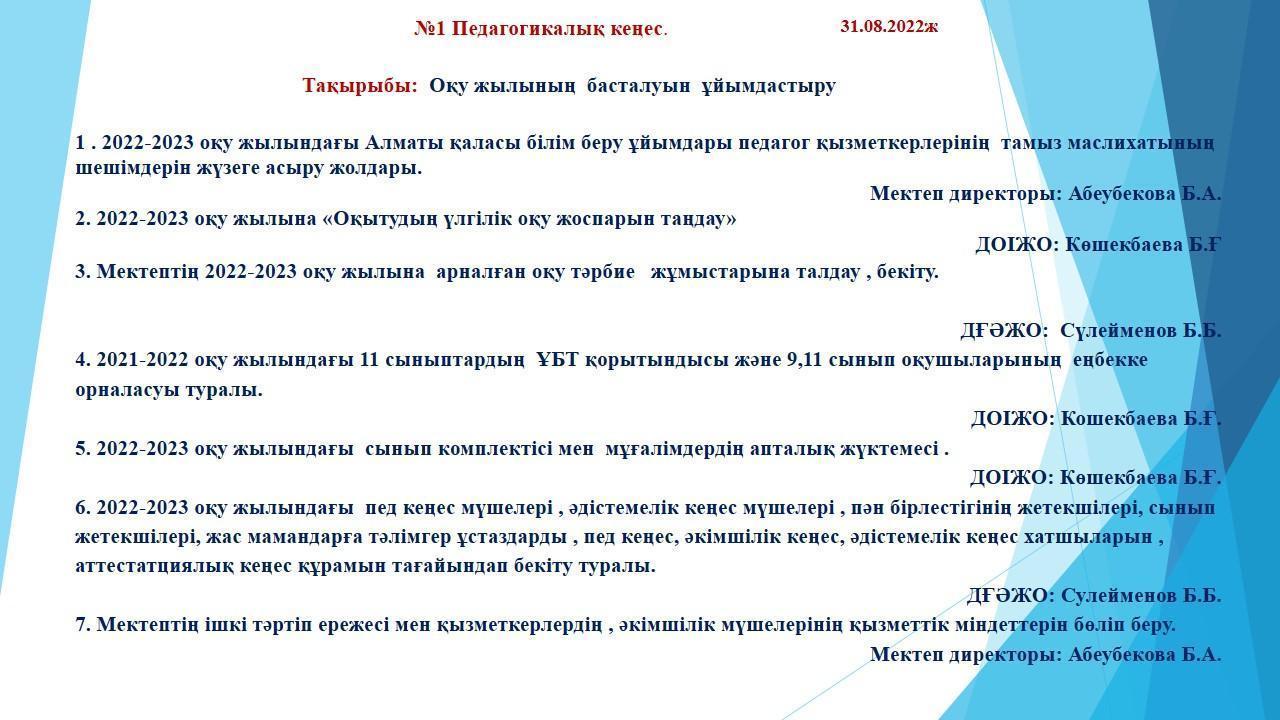 №1 Педагогикалық кеңес