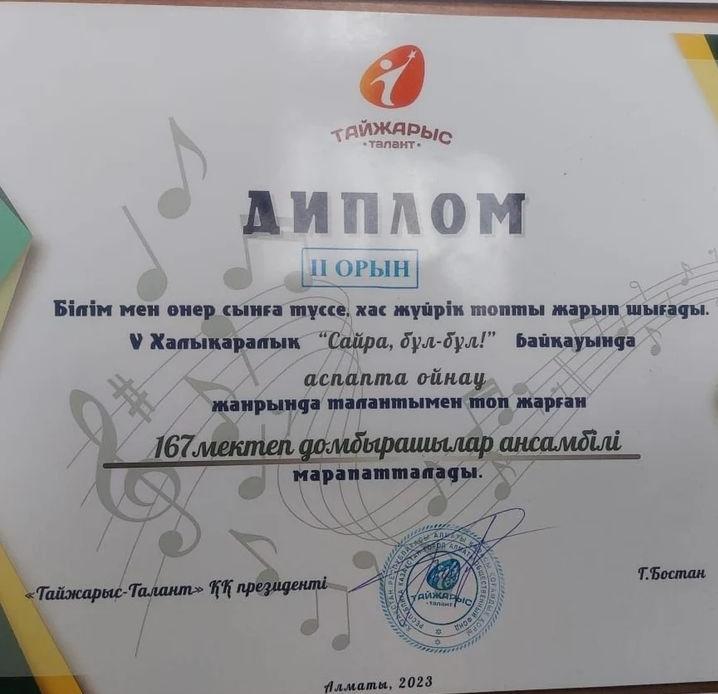 27 февраль 2023 0 1 2 3 4 5 Жас домбырашыларды жеңісімен құттықтаймыз! Халықаралық "Сайра бұл - бұл! " байқауында аспапта ойнау жанрында мектебіміздің жас домбырашылары ll дәрежелі дипломмен марапатталды. Жетекшісі: музыка пәні мұғалімі Сәутай Мақсат. Осы беттің QR-коды:QR-код этой страницы: