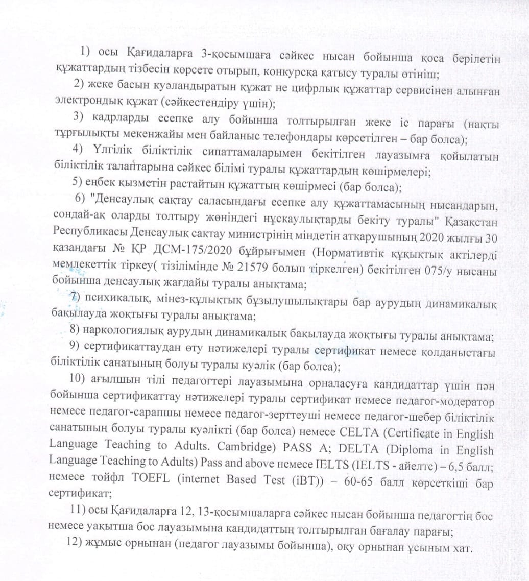 Бос тұрған педагог лауазымына тағайындауға конкурс өткізуге комиссия құрамын бекіту туралы бұйрық