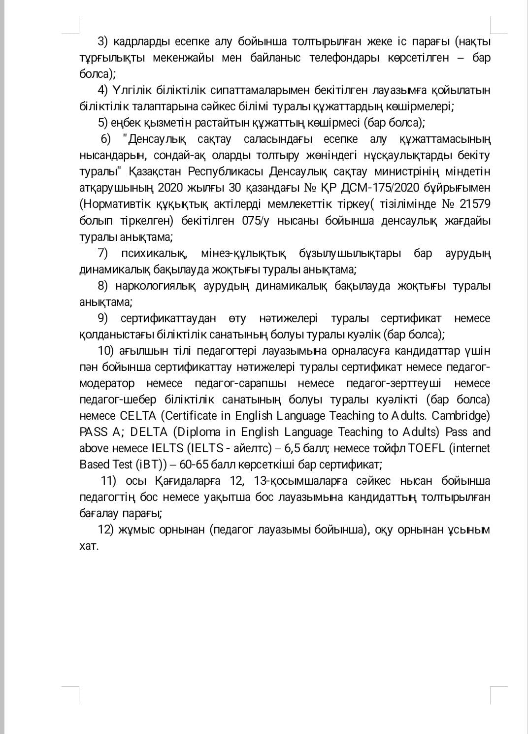 Бос тұрған педагог лауазымына тағайындауға конкурс өткізуге комиссия құрамын бекіту туралы бұйрық