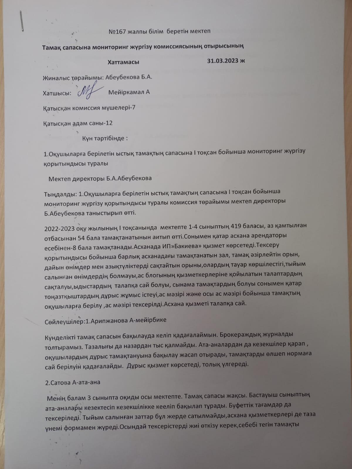 31 март 2023 0 1 2 3 4 5 Тамақ сапасына мониторинг жүргізу комиссиясының отырысының хаттамасы Осы беттің QR-коды:QR-код этой страницы: