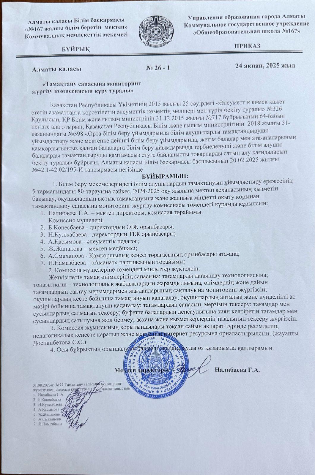 24 февраль 2025 0 1 2 3 4 5 "Тамақтану сапасына мониторинг мониторинг жүргізу комиссиясын құру туралы" №26-1 Бұйрық Осы беттің QR-коды:QR-код этой страницы:
