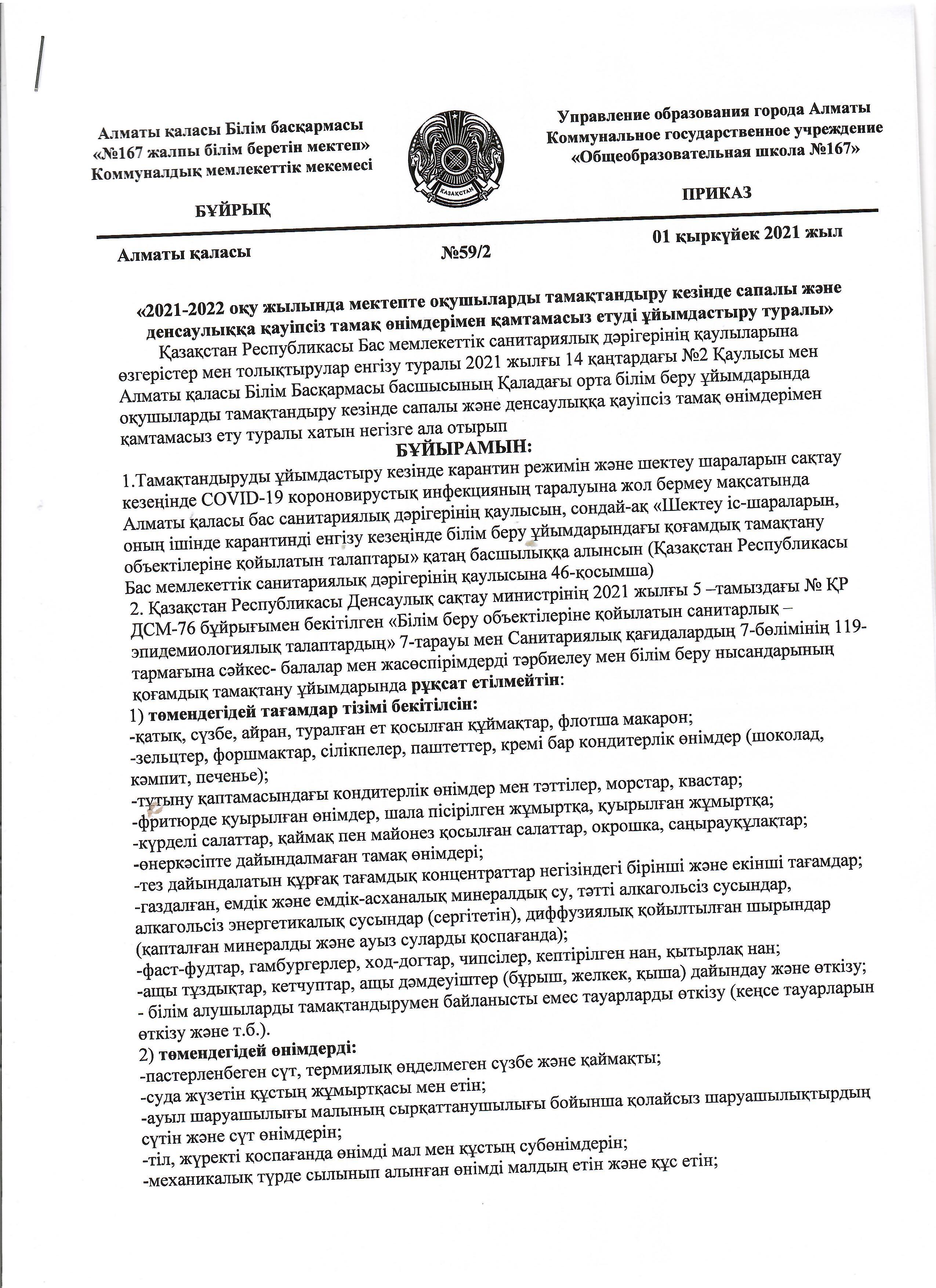 01 сентябрь 2021 0 1 2 3 4 5 "2021-2022 оқу жылында мектепте оқушыларды тамақтандыру кезінде сапалы және денсаулыққа қауіпсіз тамақ өнімдерімен қамтамассыз етуді ұйымдастыру туралы" Осы беттің QR-коды:QR-код этой страницы: